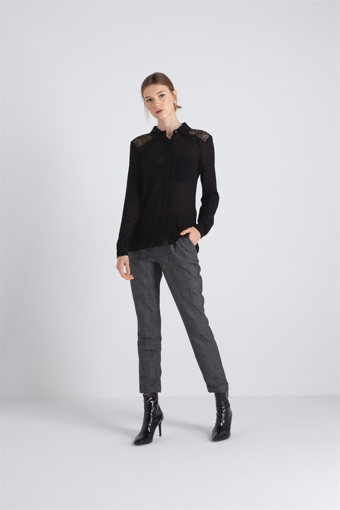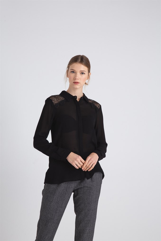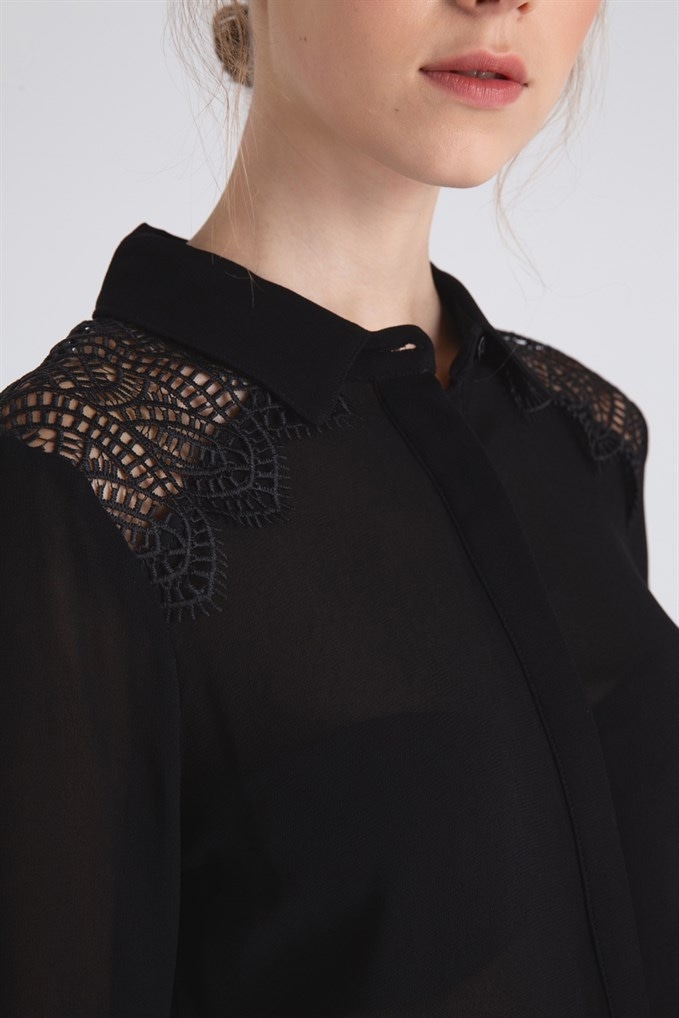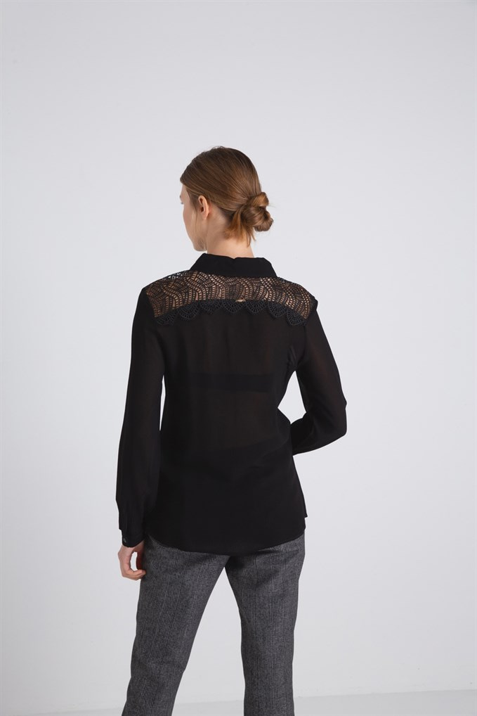 Omuzları Güpür Detaylı Şık Siyah Bluz (FR18FP064_BLACK)