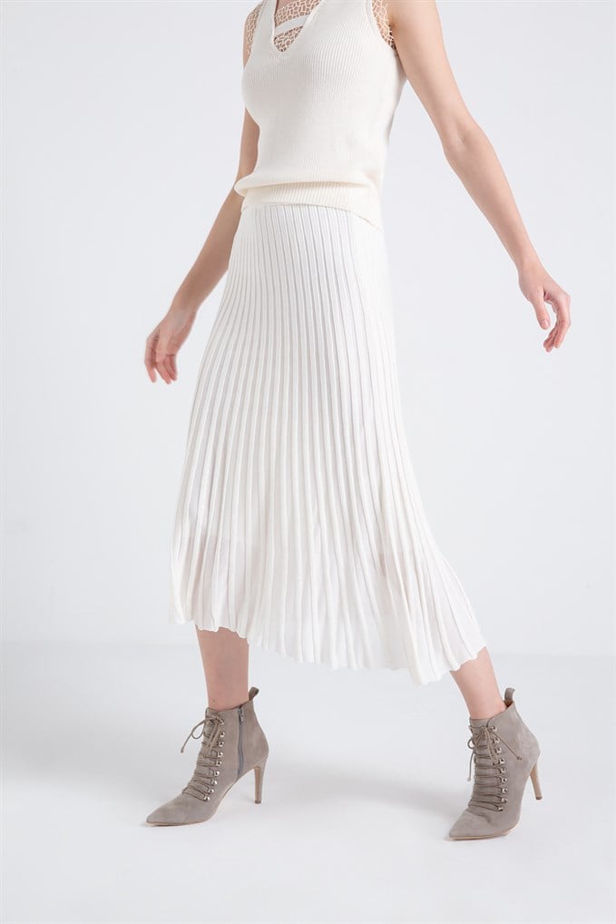 Piliseli Triko Çan Etek Ekru (20280157_EKRU)