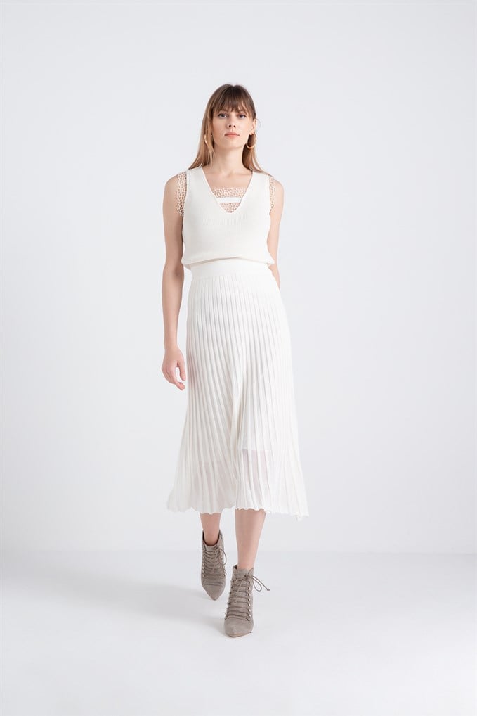 Piliseli Triko Çan Etek Ekru