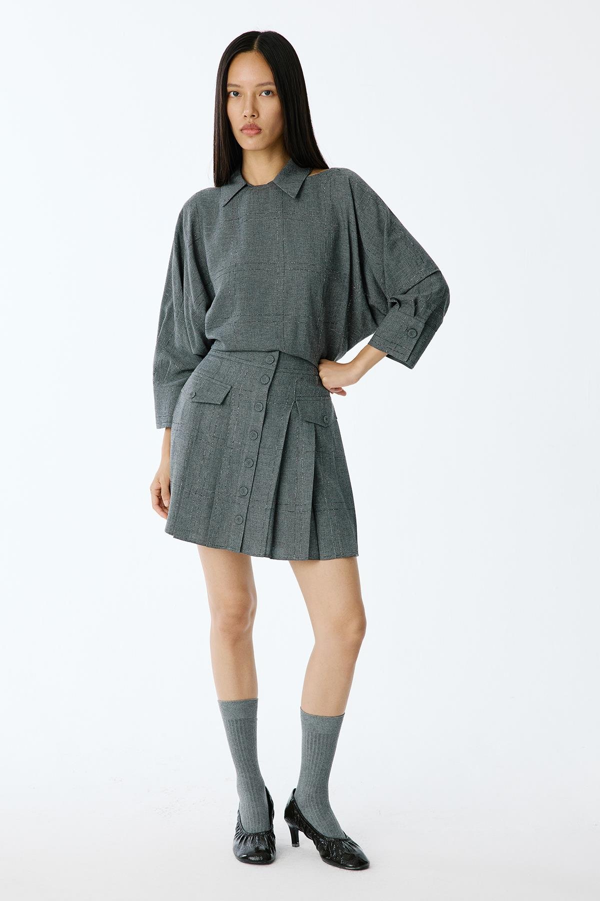 Sim Detaylı Piliseli Gri Mini Etek (20225065_GRI)