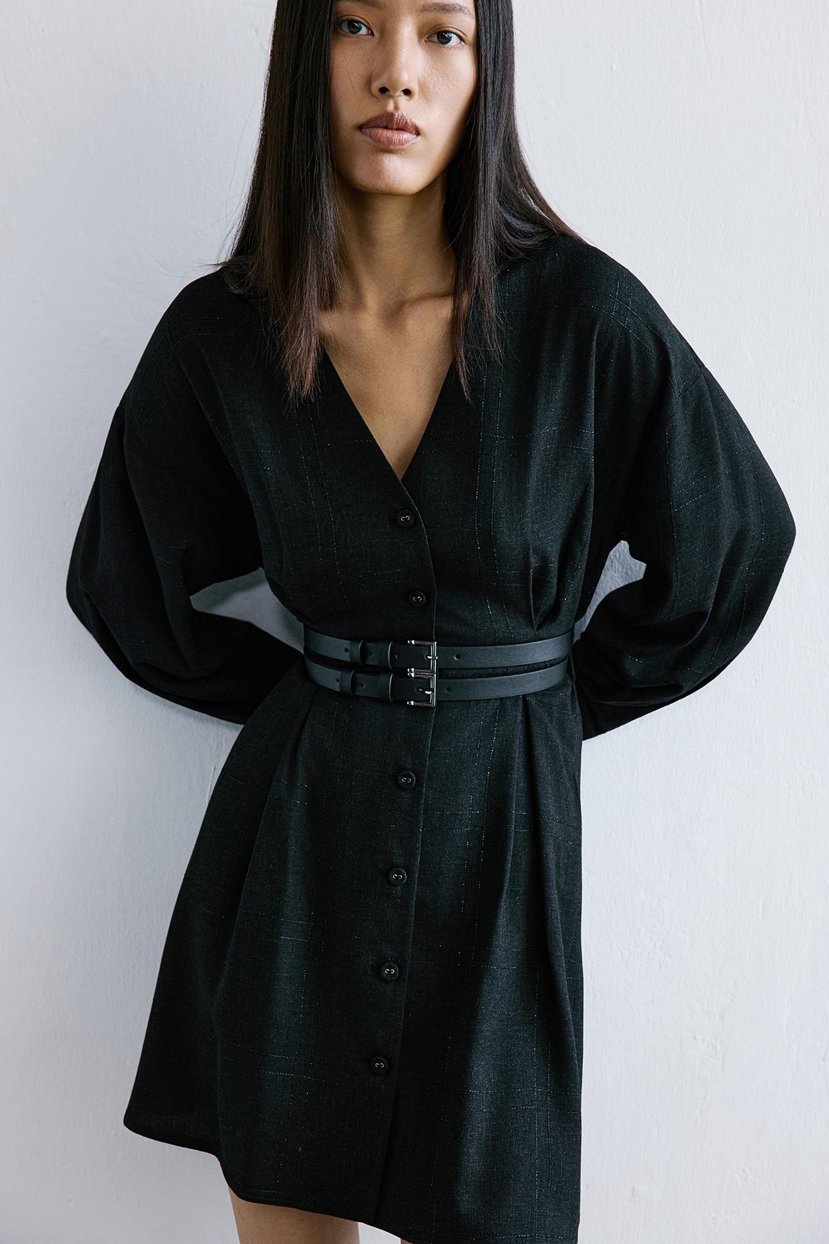 Sim Ekoseli V Yaka Siyah Mini Elbise (20625067_SIYAH)