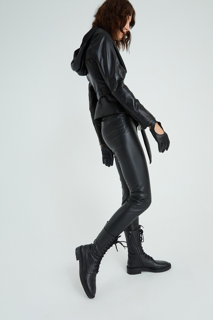 Siyah asimetrik fermuarlı kapüşonlu deri ceketler mevsim geçişlerinin kurtarıcı parçası. Bu siyah asimetrik fermuarlı kapüşonlu deri ceket, yandan kapamalı fermuarı, kapüşonlu modeli ve %100 deri yapısıyla size asi bir şıklık sunuyor.