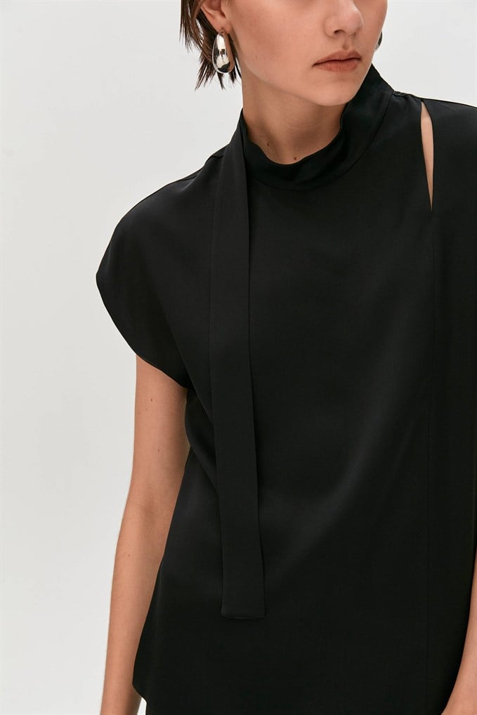 Siyah Boynu Kuşaklı Kolsuz Bluz (20990105_SIYAH)