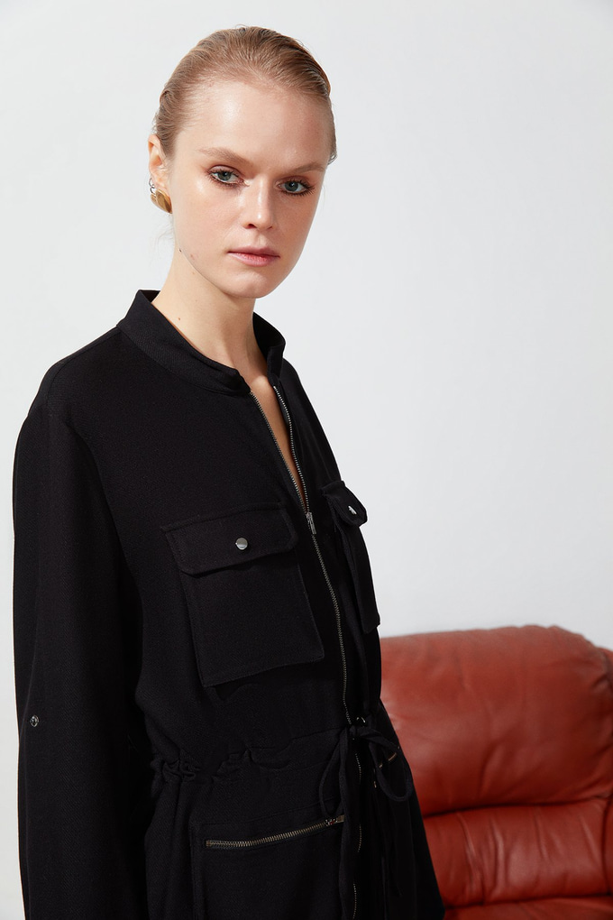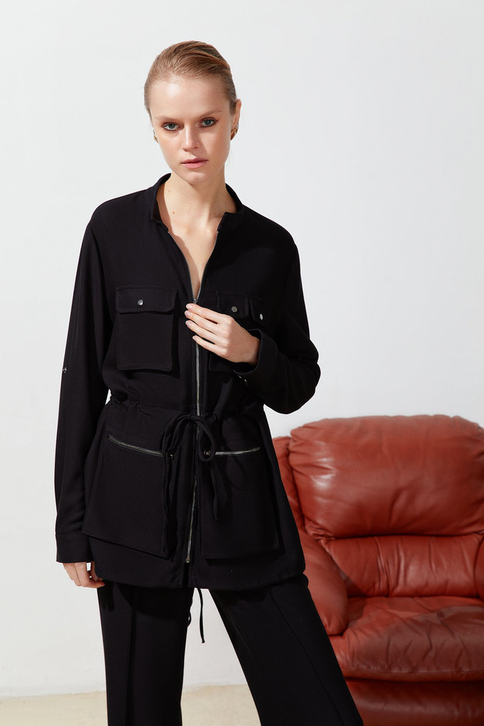 Siyah Cep Detaylı İnce Ceket (20821126_SIYAH)