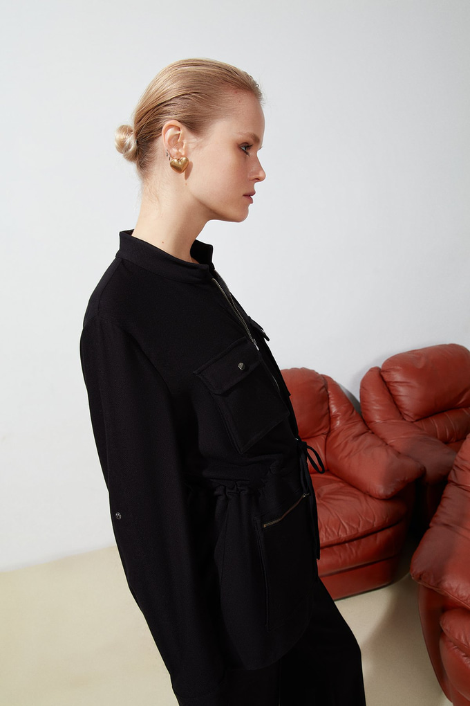Siyah Cep Detaylı İnce Ceket