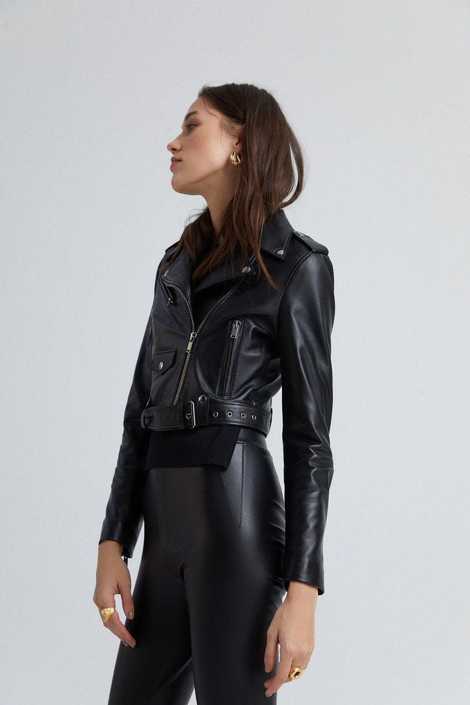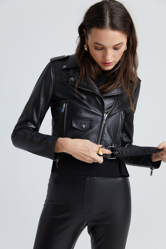 Siyah Kısa Deri Ceket