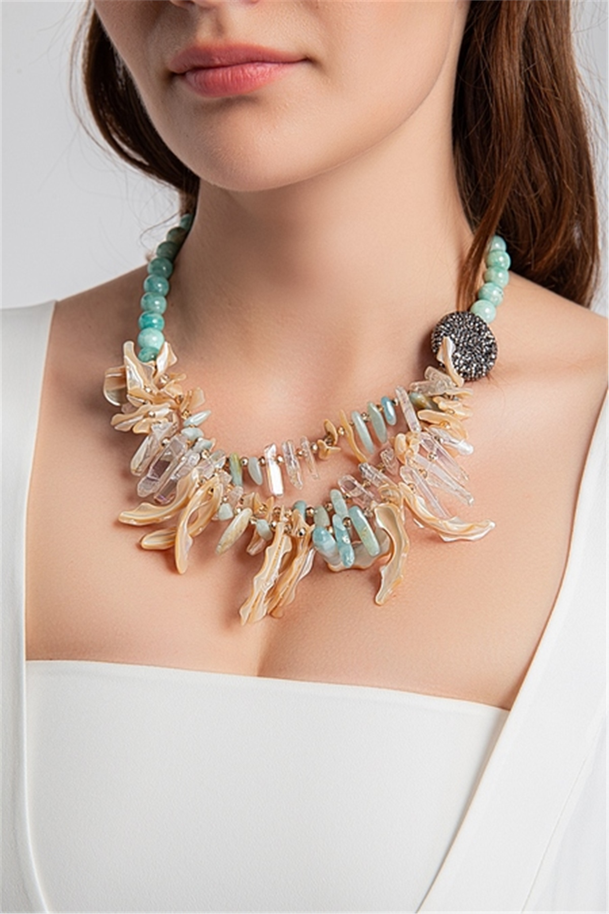 Turkuaz Taşlı Sedef Çubuklu Tam Kolye Std (DK1001_STD)
