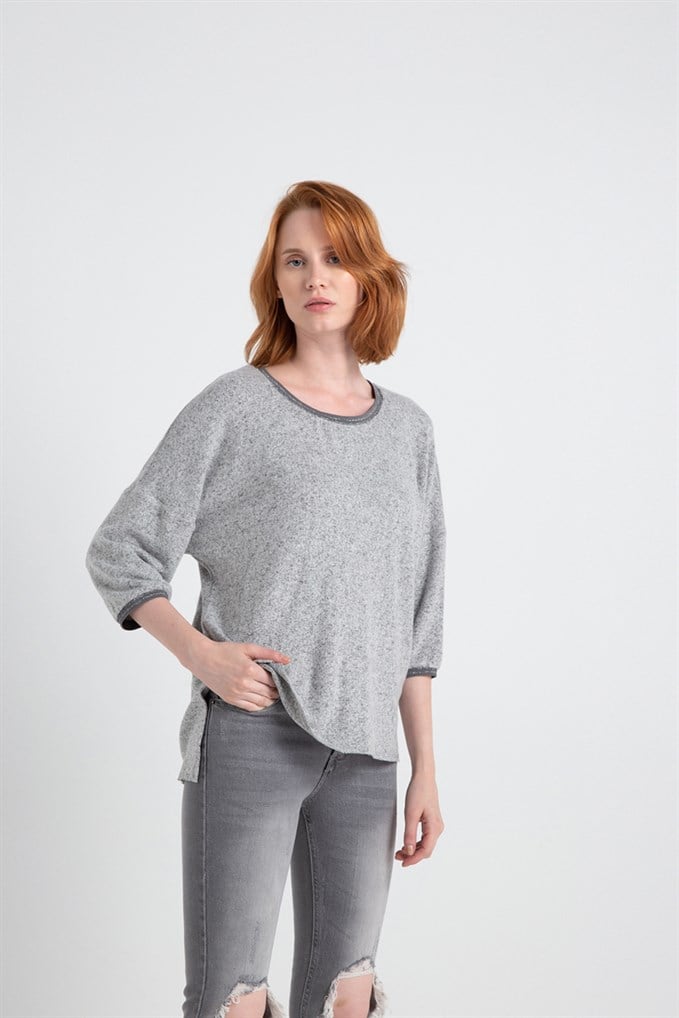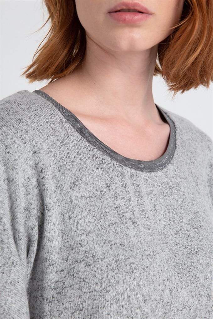 Yaka Ve Kol Ucu Ribanalı Örme Bluz Grimelanj (20980176_GRIMELANJ)