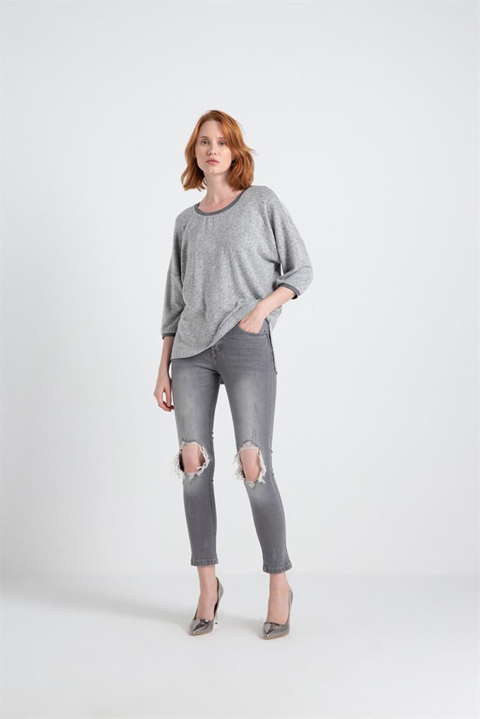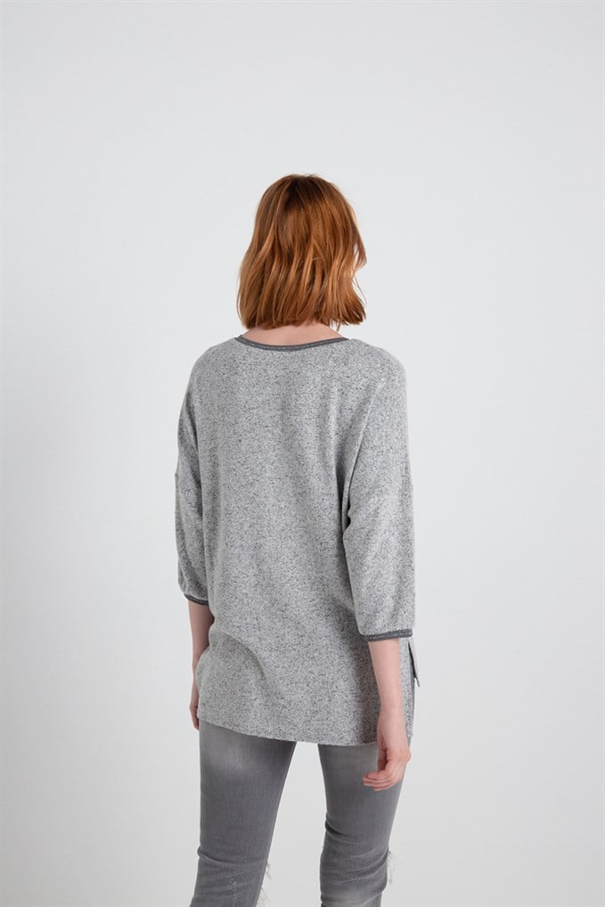 Yaka Ve Kol Ucu Ribanalı Örme Bluz Grimelanj