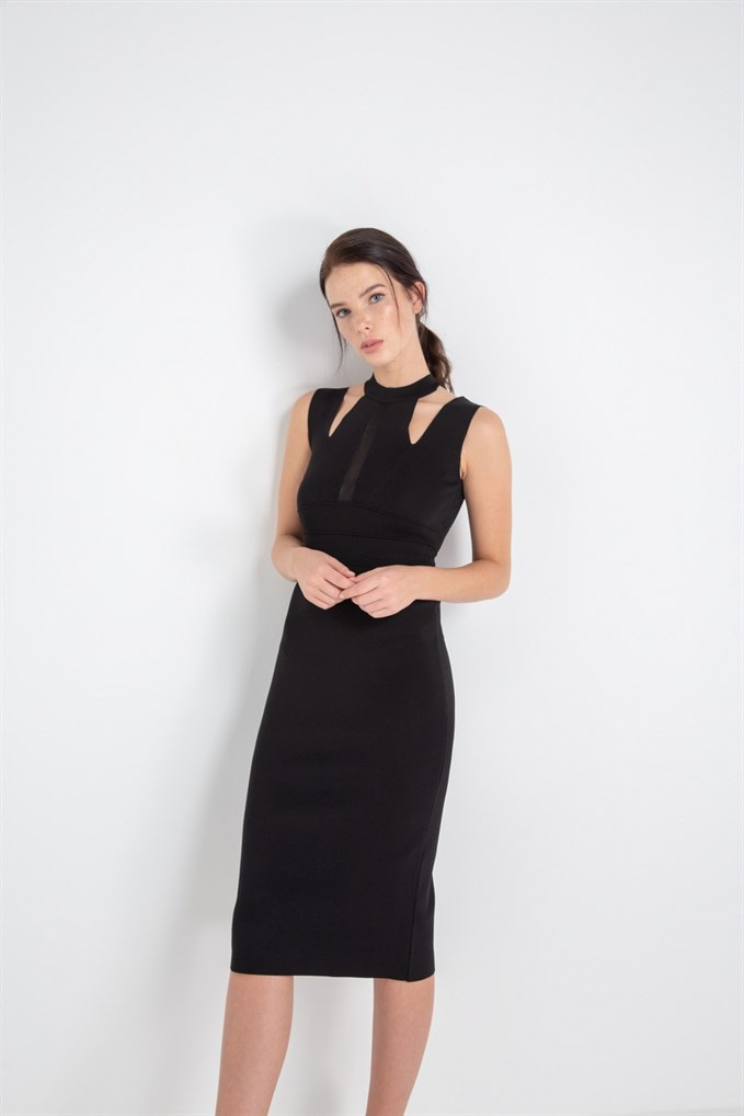 Yarım Balıkçı, Pencereli Triko Elbise Siyah (20680143_SIYAH)