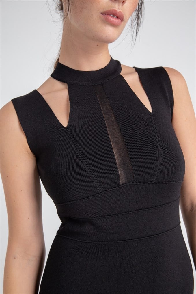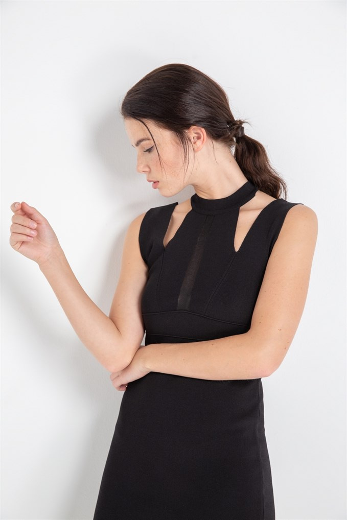 Yarım Balıkçı, Pencereli Triko Elbise Siyah