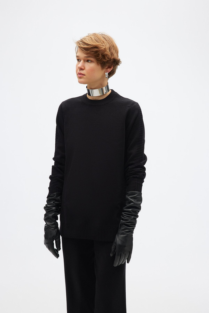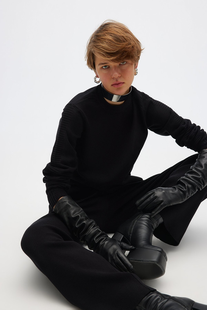 Yırtmaçlı Uzun Triko Siyah Kazak
