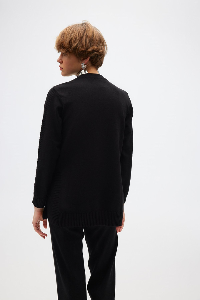 Yırtmaçlı Uzun Triko Siyah Kazak (20722012_SIYAH)